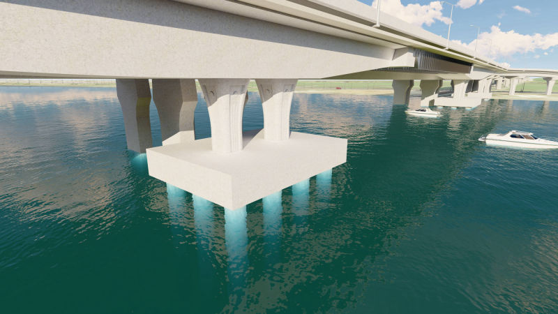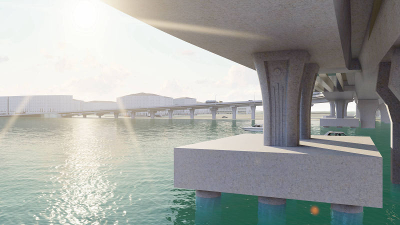 Systems used:-Continuous Post Tension Box Girder Bridge, Steel Bay and Slab on Piles.